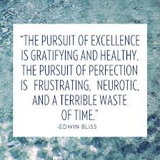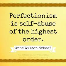 As this quote illustrates an emotion that drives perfectionists is fear. Fear that if we’re not perfect we won’t be loved, worthy, we’ll be a failure, or we’ll lose our jobs. We create all kinds of unrealistic and false motivators to drive our perfectionism. So you can counter that fear with self-love and realism. When you notice your inner perfectionist activated try to observe yourself and ask some questions to inject self-love and realism into the situation. You can use the above statements and question if they’re true. You can ask what would happen if I didn’t (fill in the blank with whatever you’d usually be compelled to do in order to try to obtain perfection in what you’re doing). Would anyone but you even care or notice?