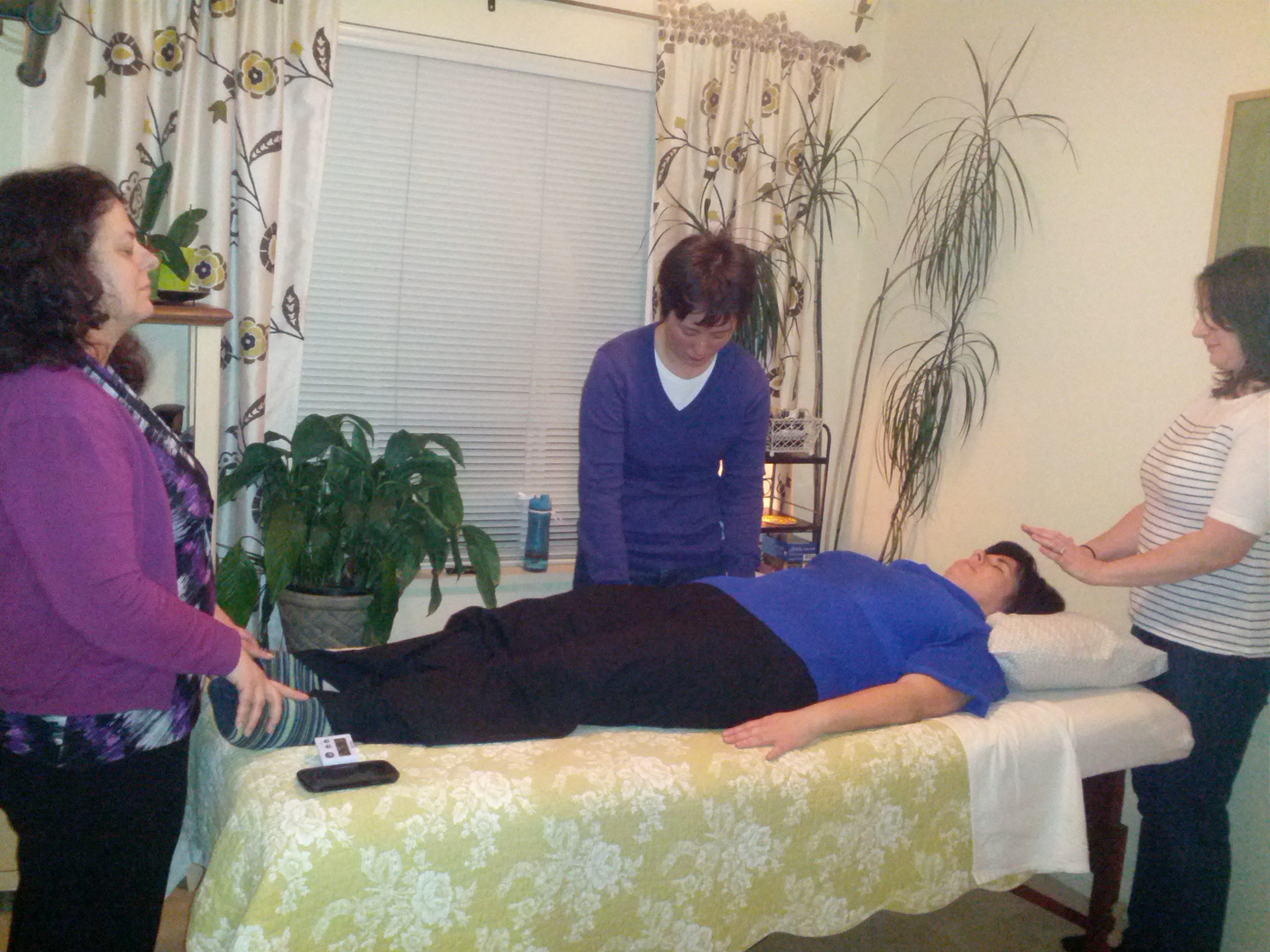 The share has a minimum of 3 and maximum of 6 participants. Each person receives a treatment during the share and will give treatments to 2 to 5 people (depending on the number of participants). Each person gets a chance to play a different role during the share. For example, they may be leading a treatment during the share, which includes providing the invocation for the session, leading the session, and then closing the session; or perhaps, they may be the timer for the session keeping track of time and letting participants know when it’s time to change hand positions.