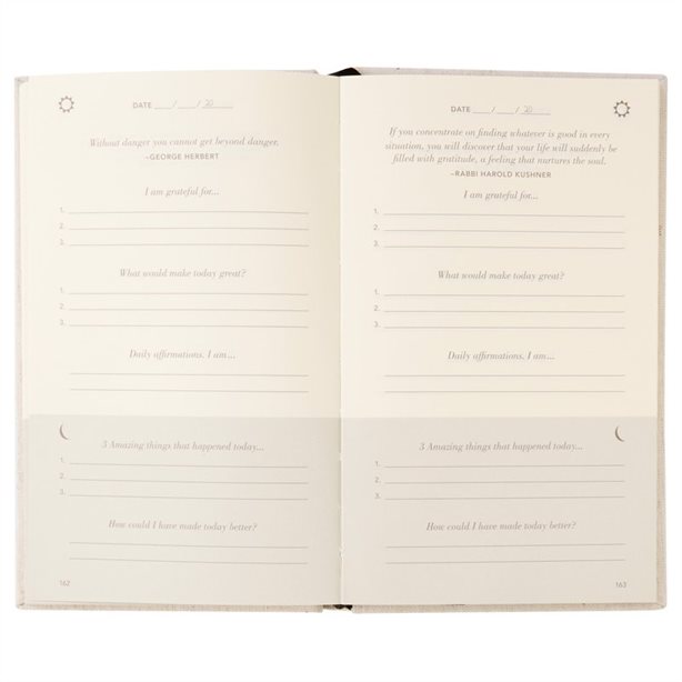 You write in the morning about what you are grateful for and what would make today great. You also write a daily affirmation. Then in the evening, you write about 3 amazing things that happened and how you could have made today even better. Ideally, this is done twice a day, but if that doesn’t work for you, you can just do the writing once a day. So don’t make this about being perfect (and using that as an excuse not to journal regularly).