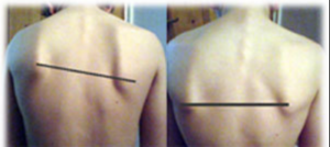 Illustration of shoulder blade alignment before (left image) and after (right image) Quantum-Touch session (from Quantum-Touch – The Power to Heal (R. Gordon 2006)